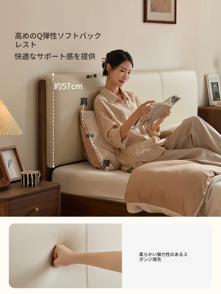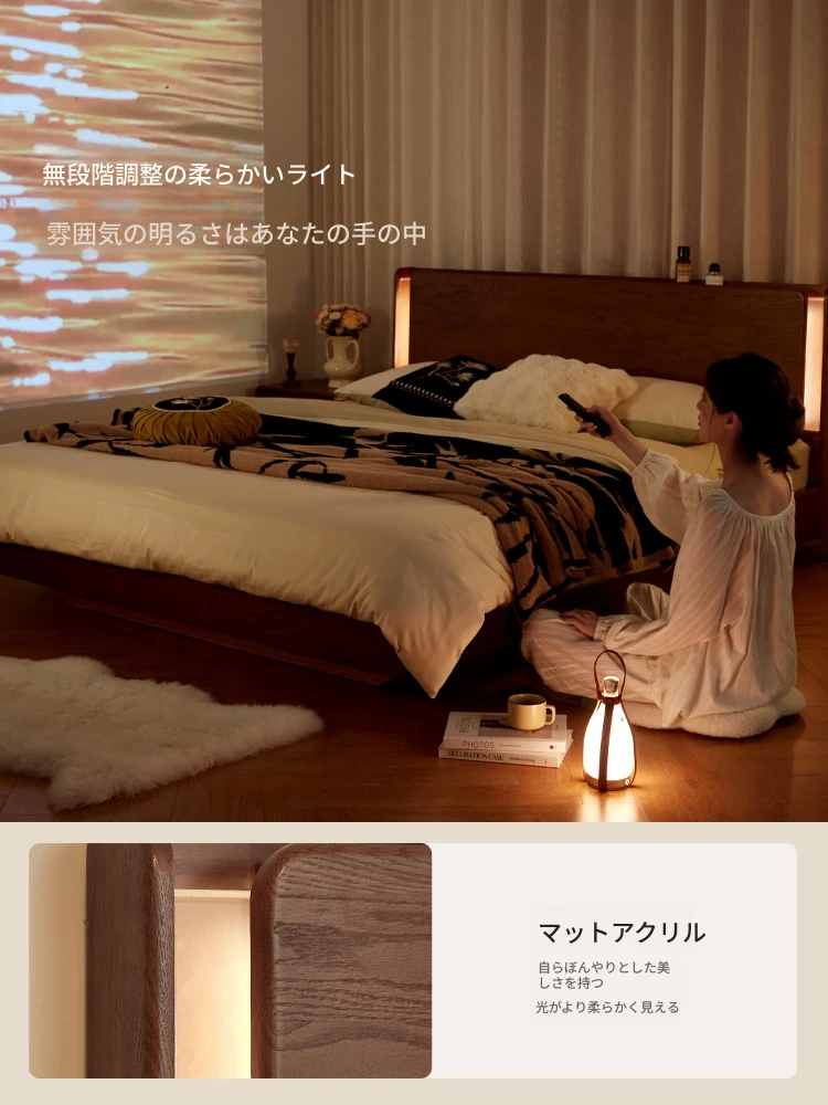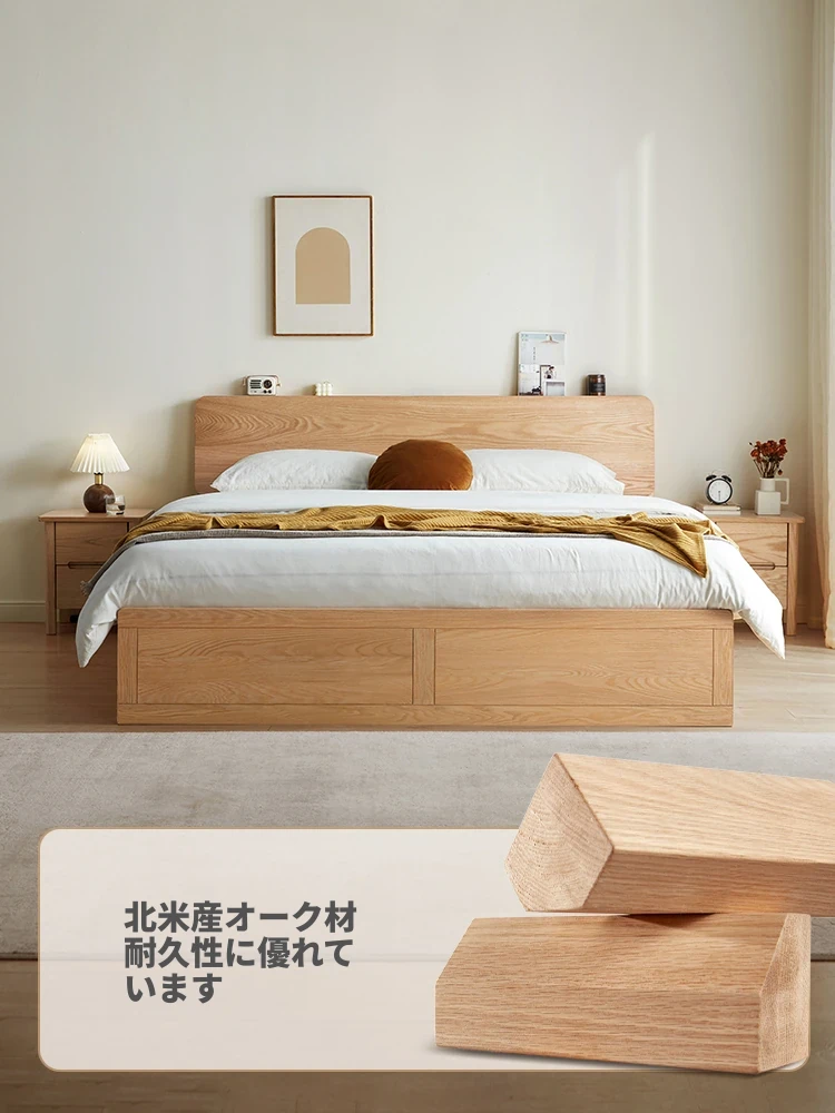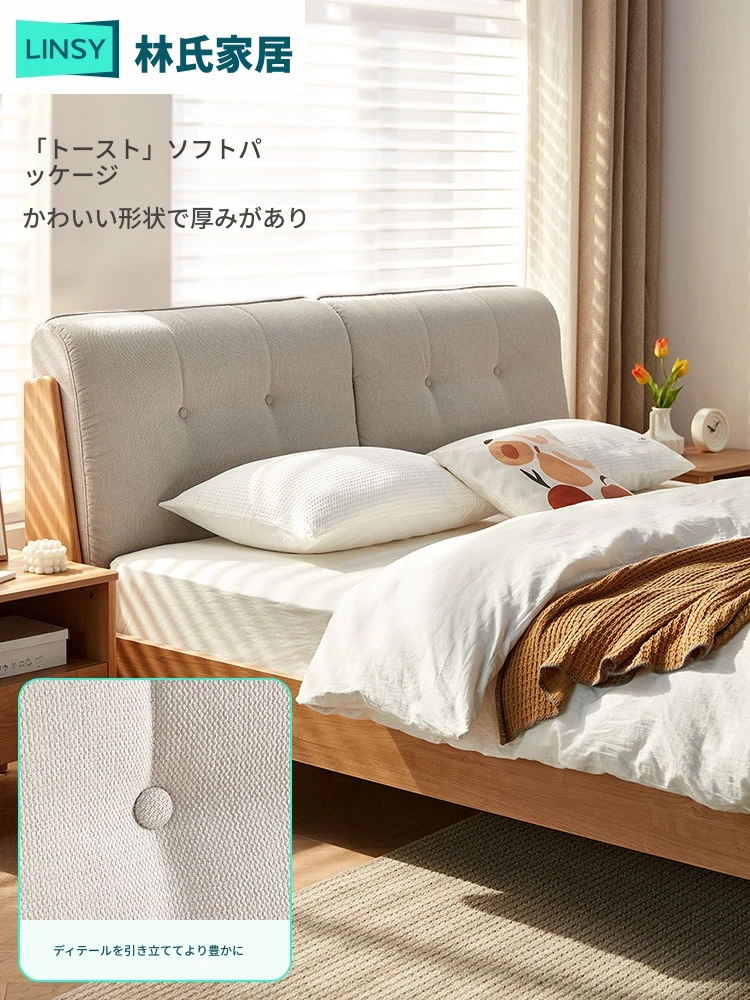 林氏家居の北米オーク無垢材ベッド - 主寝室にぴったりな1.5mソフトパッドダブルベッド!2025年新作、スタイリッシュで快適な眠りをお届けします。