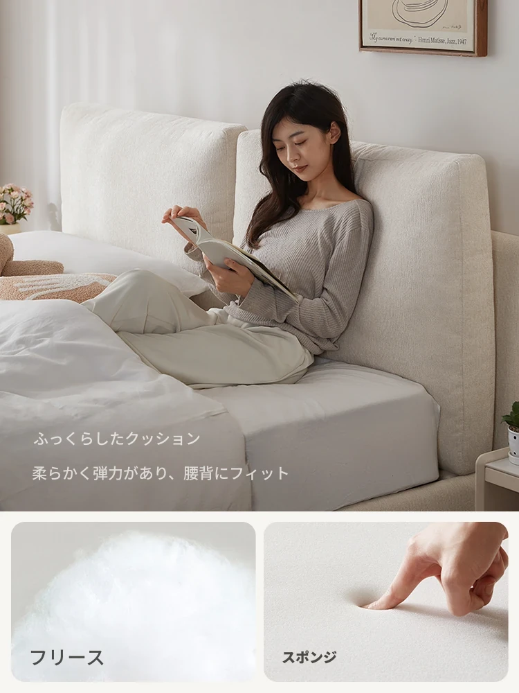 リン氏家居 布製ベッド 女子のための寝室にぴったり!クリーム風の高級感あふれるダブルソファベッド 結婚生活に最適なモダンデザイン 木製フレーム付きで安定感抜群!