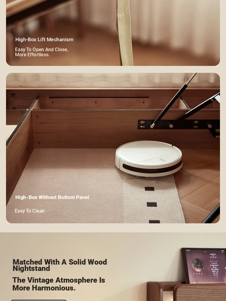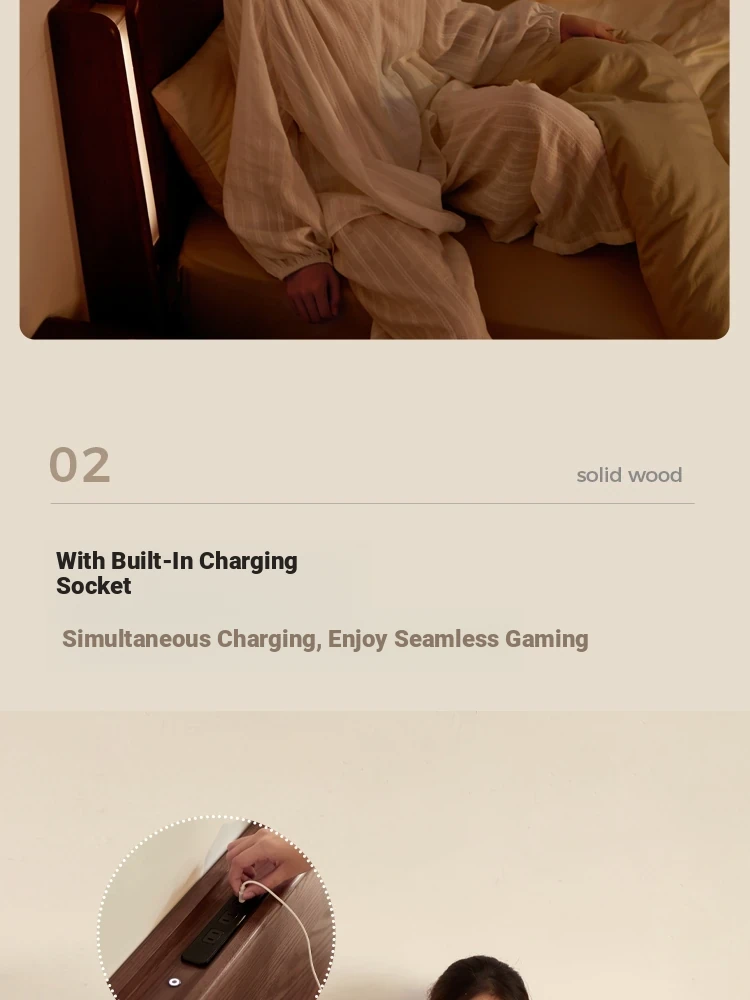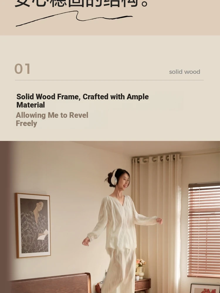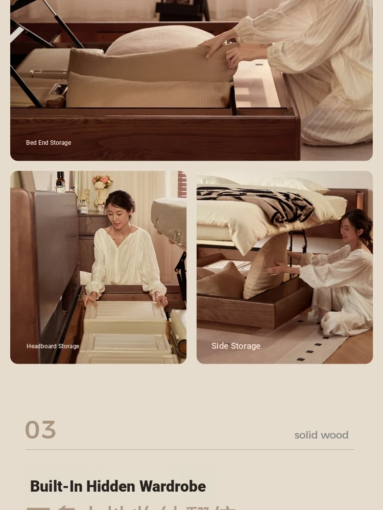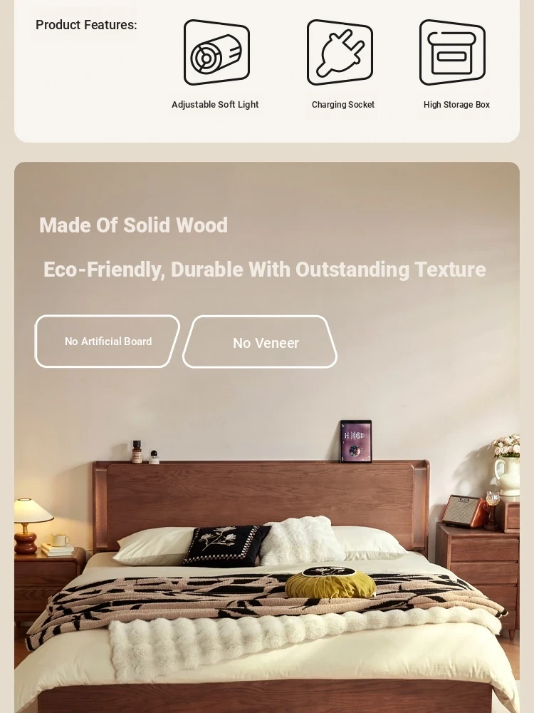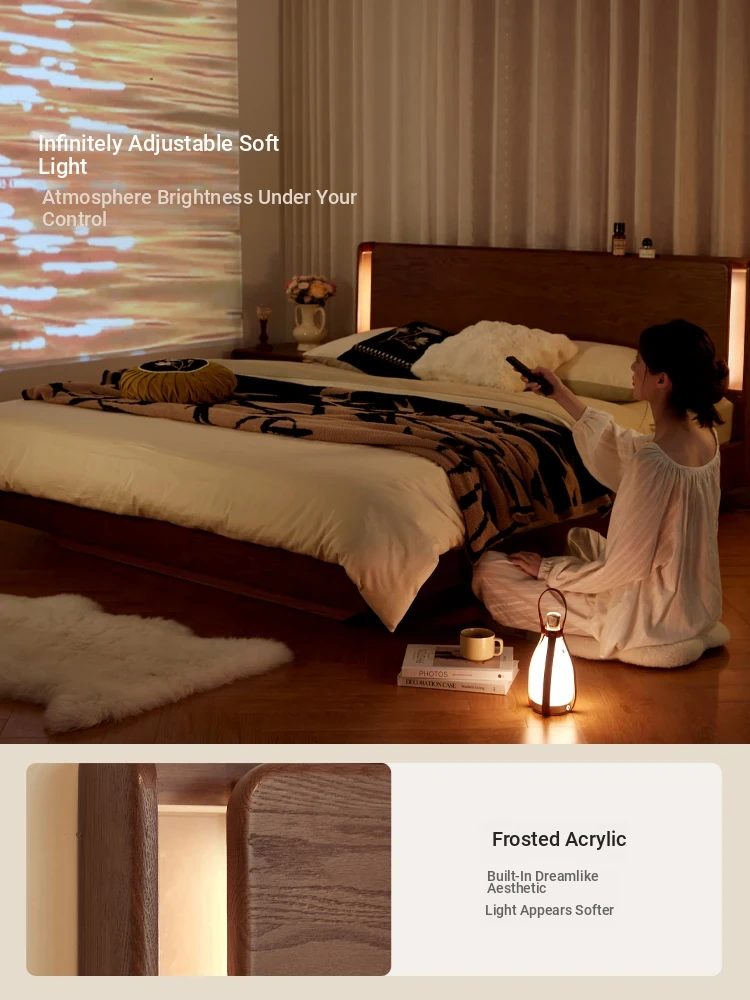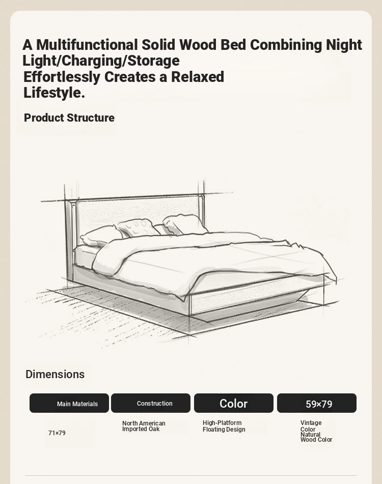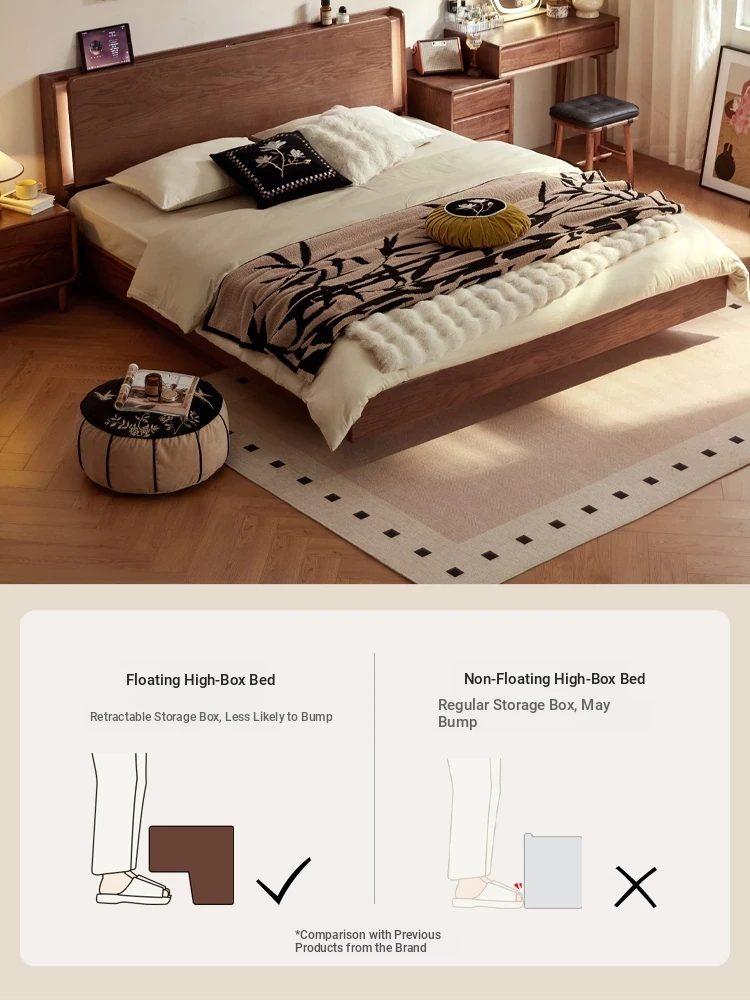 [Retro | Oak | Storage style] suspended solid wood bed + bedside table