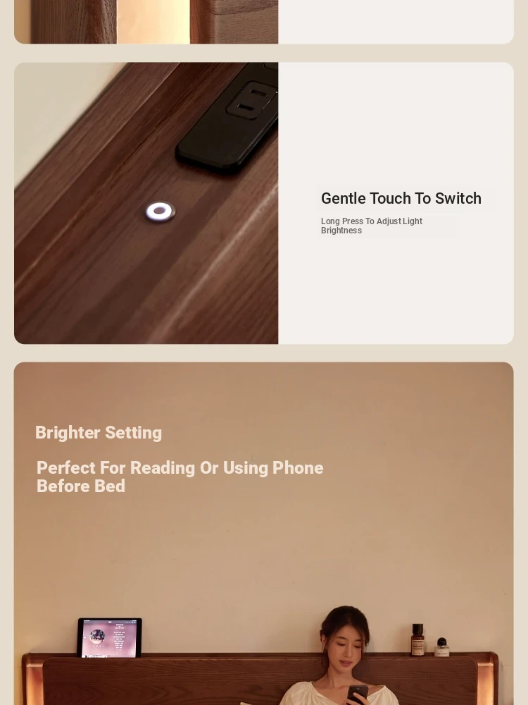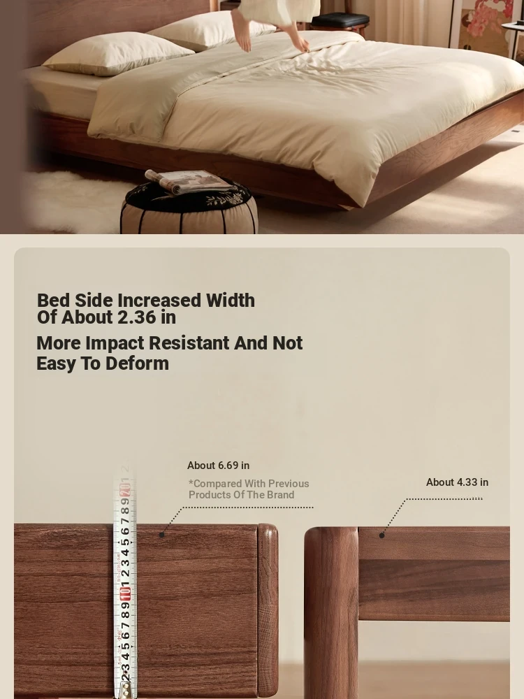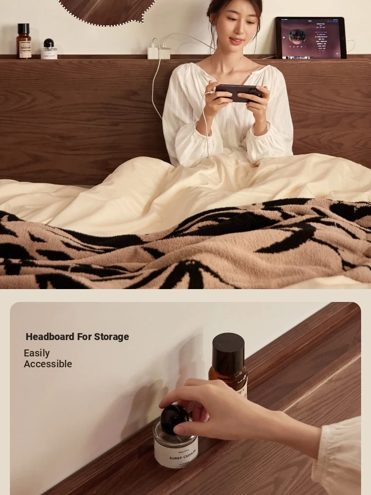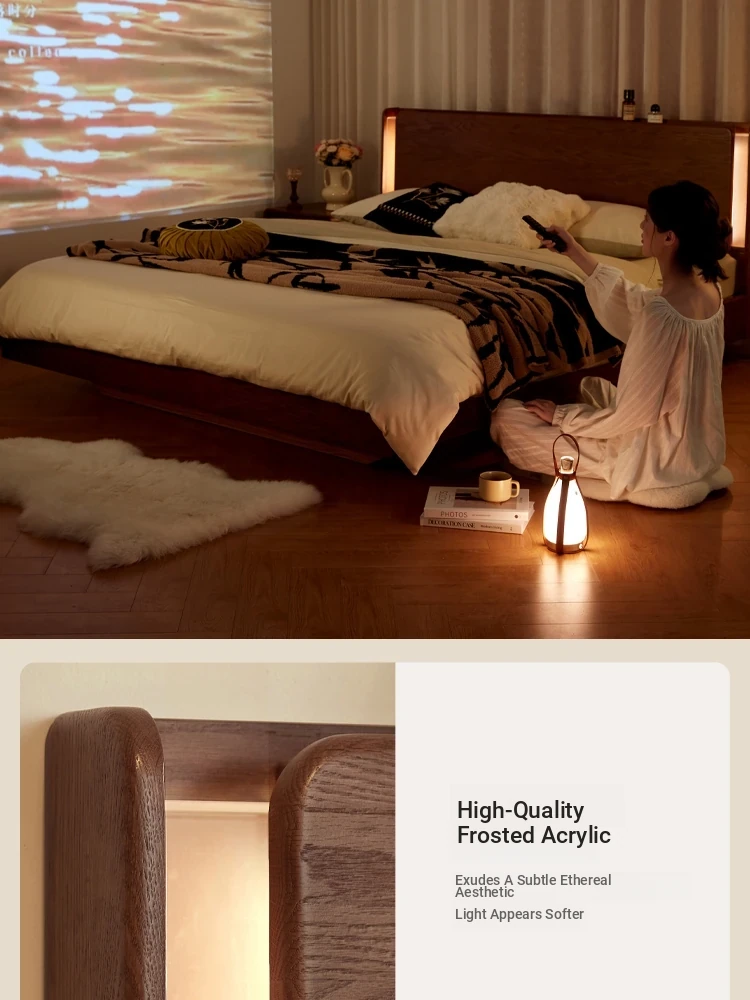 [Retro color | Oak | Storage] suspended solid wood bed + bedside table + mattress (7.87in)