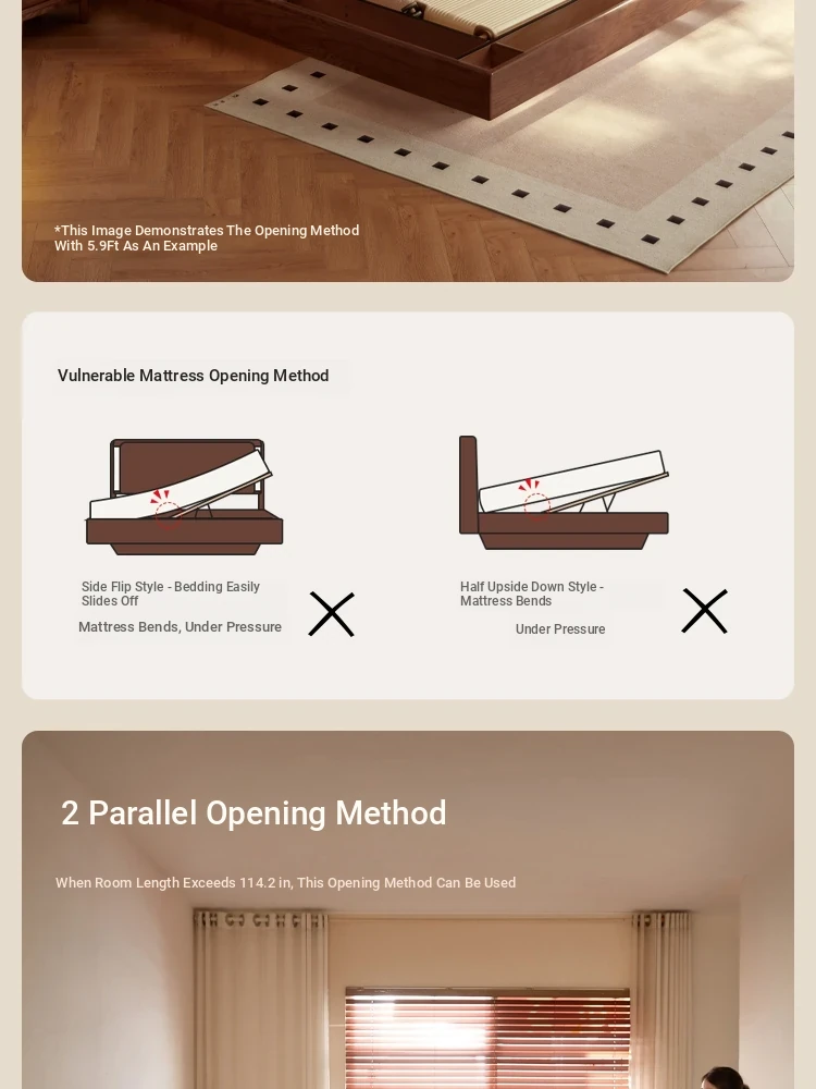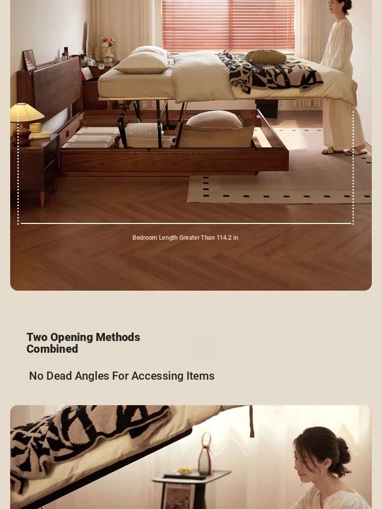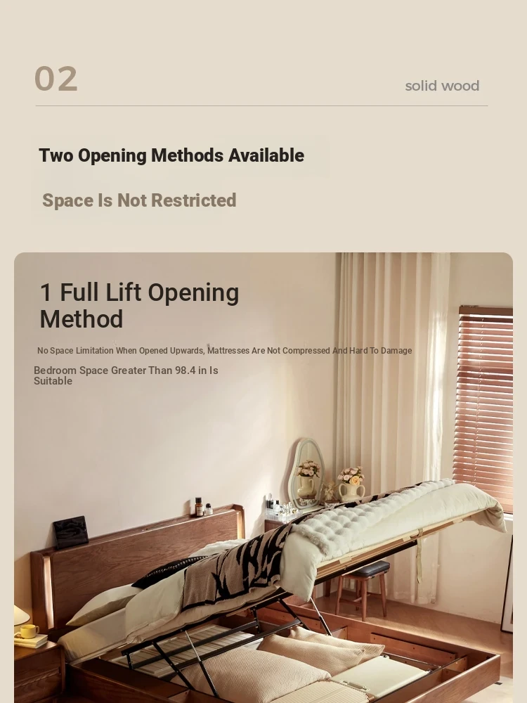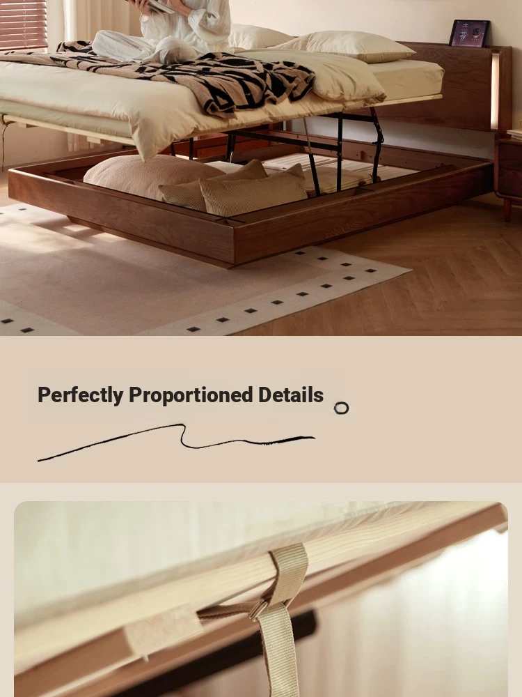 [Retro color | Oak | Storage] suspended solid wood bed + mattress (7.87in)