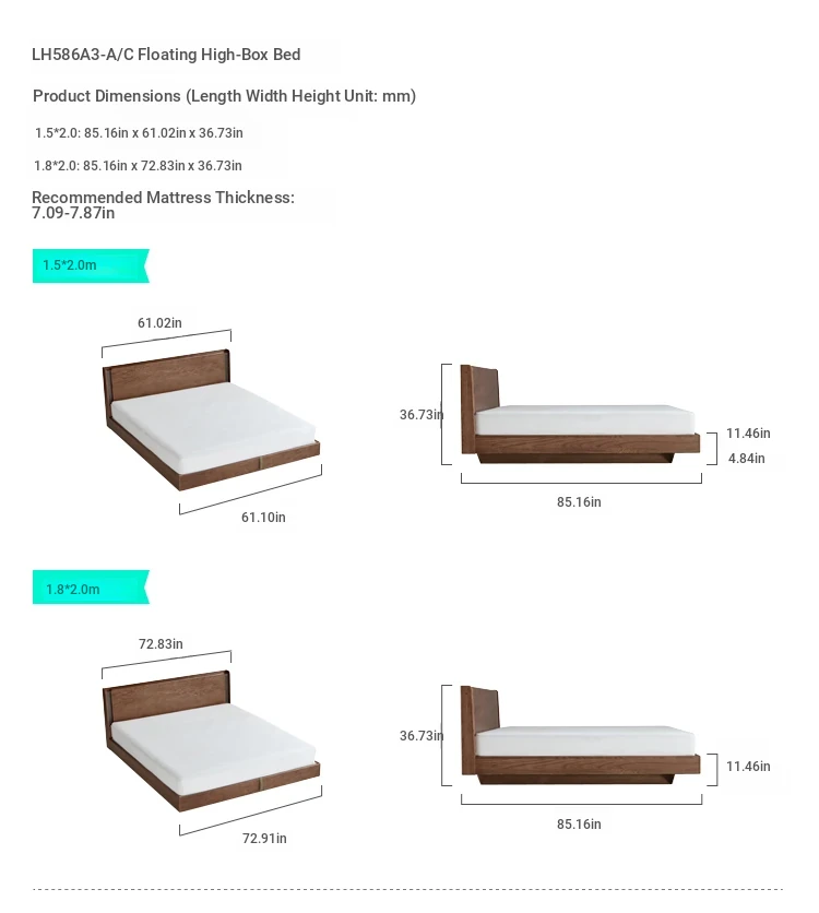 [Log color | Oak | Storage] suspended solid wood bed + bedside table + mattress (7.87in)