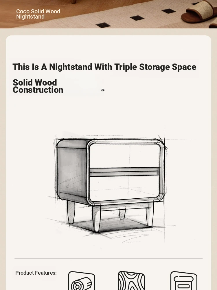 Lin’s Furniture Vintage Solid Wood Ultra-Narrow Nightstand - Ideal for Small Spaces, Combining Timeless Style with Practical Functionality. Perfect for Modern Bedrooms!