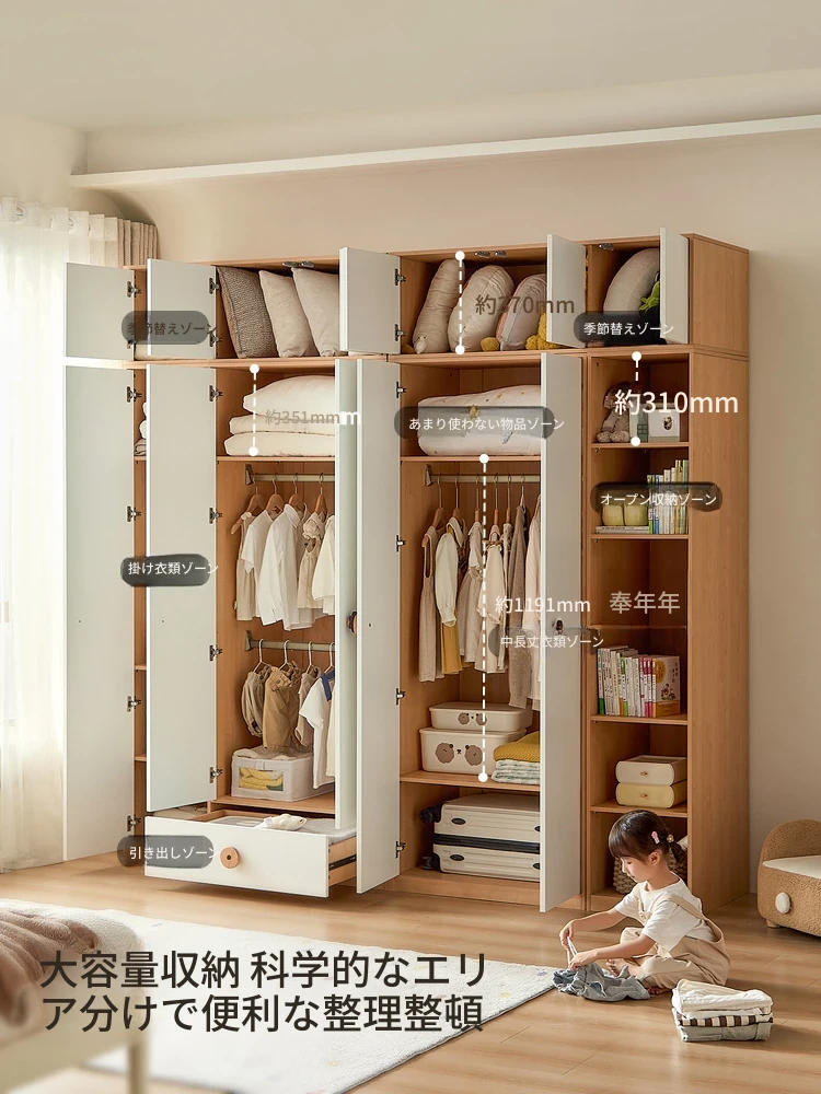 リンシ家居の子供部屋用クローゼット - 家庭用衣類収納ラック、賃貸物件に最適な完成品衣装チェスト、新作登場!スッキリ整理できる収納力抜群!