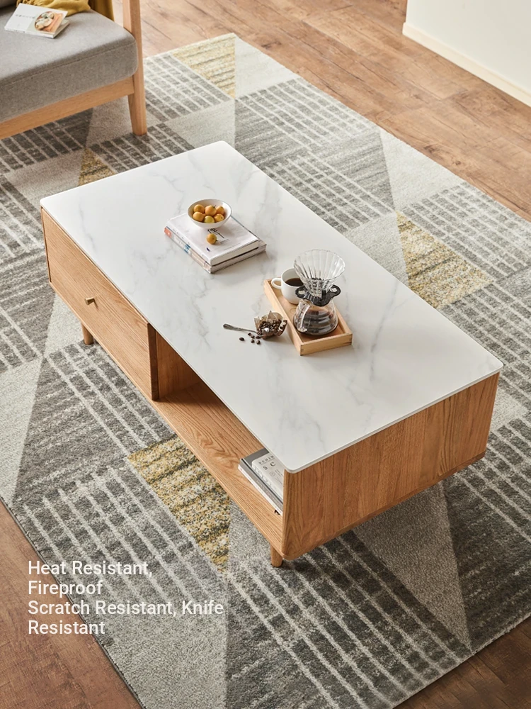 Linsy Nordic Minimalist Solid Wood TV Cabinet and Coffee Table Set - Stylish Rock Plate Living Room Storage Solution BH1M